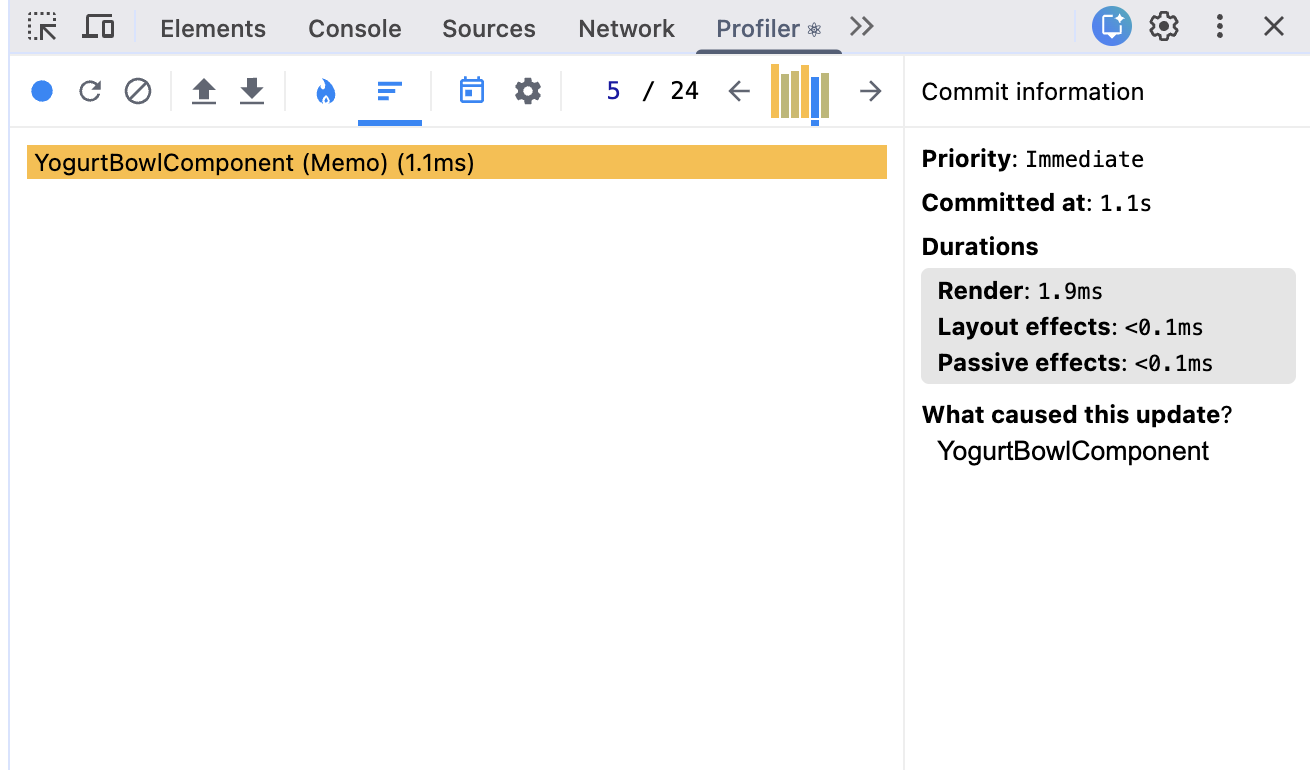 React DevTools Profiler를 사용해서 성능 측정을 진행했다.